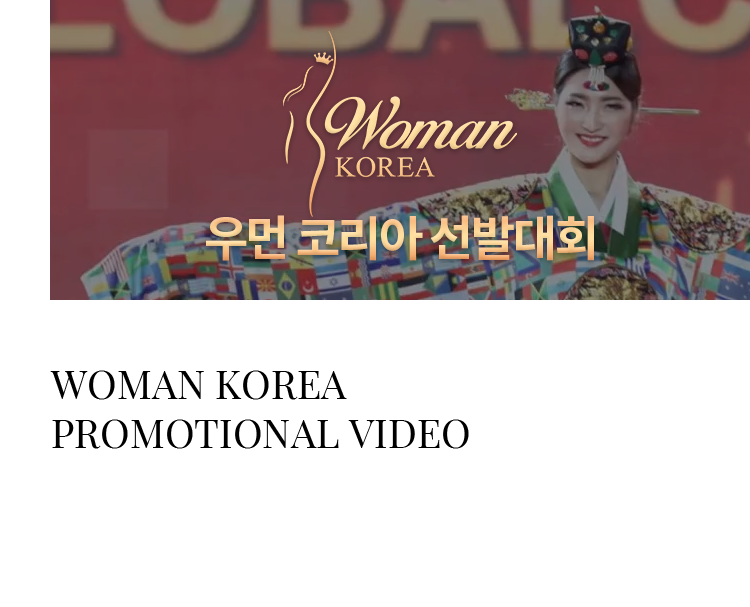 우먼 코리아는 외적인 아름다움은 물론 지성과 품격, 포용력 있는 마음씨를 겸비한 대한민국의 홍보대사로, 한류문화와 뷰티, 패션산업을 선도 하며 여성의 미래와 희망을 제시하고 국내뿐만 아니라 전세계에 대한민구의 위상과 아름다움 을 알리는 활동을 하게됩니다.